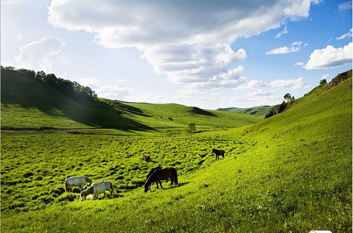 夏天的草原綠草如茵,深呼吸一口,清香的草木味撲鼻而來,讓人心曠神怡、如癡如醉。漫游在草原上,風(fēng)吹草動(dòng),形成了一幅如詩如畫的景象,正如北朝民歌“天蒼蒼,野茫茫,風(fēng)吹草低見牛羊”!騎在馬背上,悠哉游哉,仿佛進(jìn)入了世外桃源。